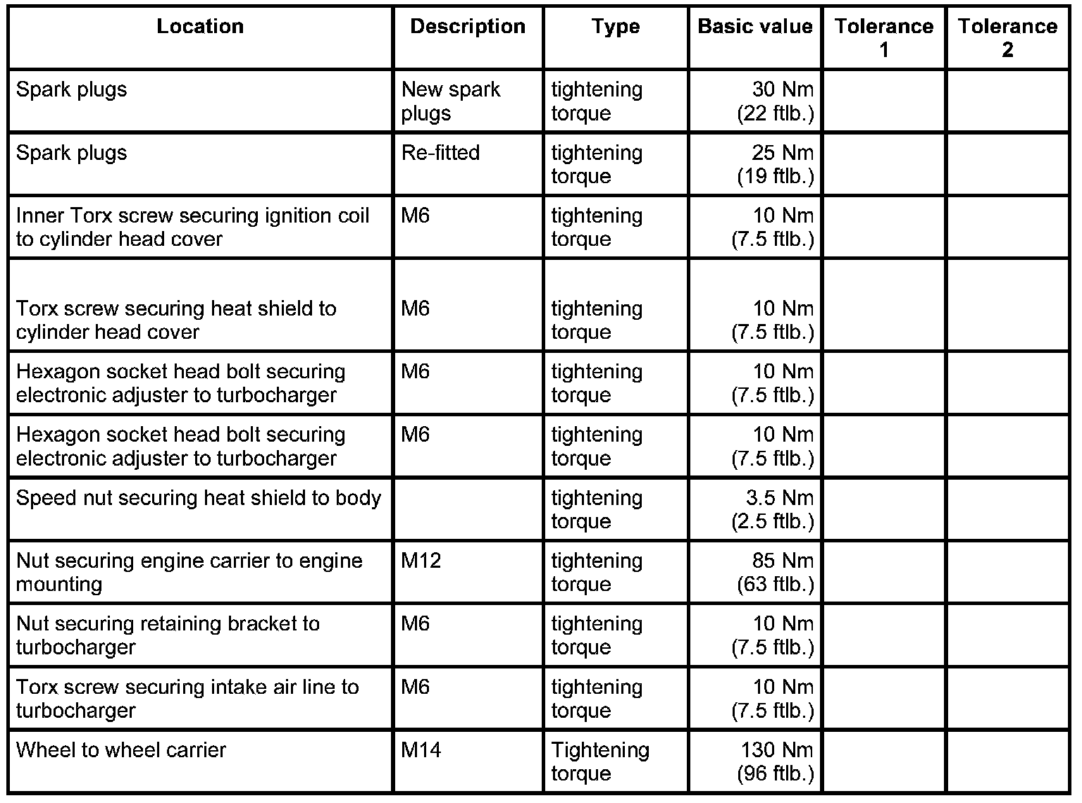 - tightening torque: 25 Nm (19 ftlb.)