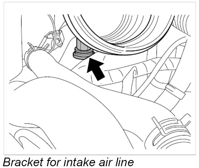14. Press intake air lines with the rubber sleeves into the brackets -arrow-.