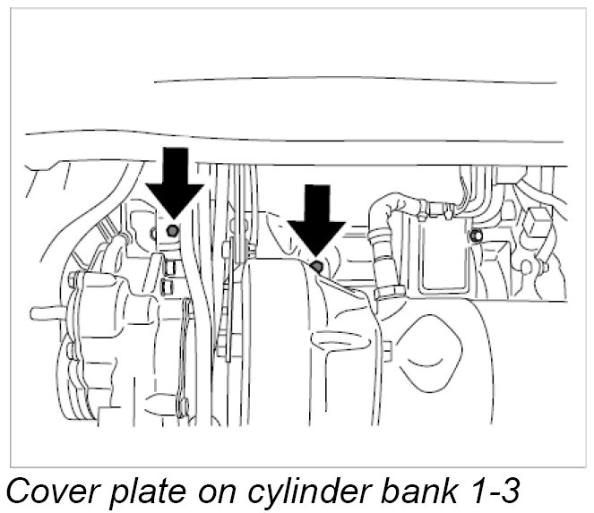 13. Unscrew two Torx screws (M6 x 12) -Arrows- and remove cover plates.