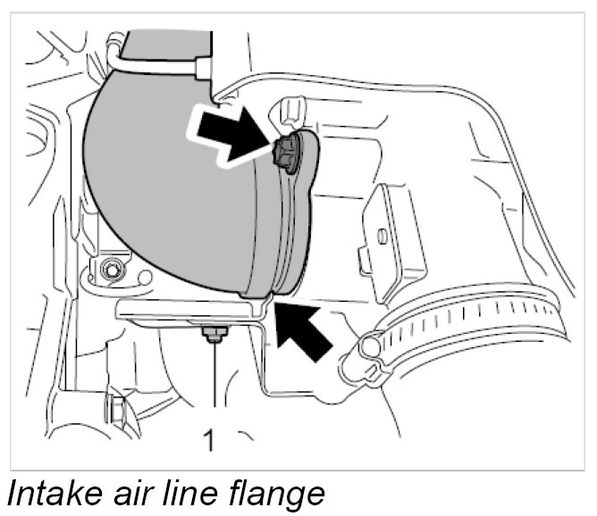 4. Press intake air lines out of the brackets -Arrow- in the engine compartment.