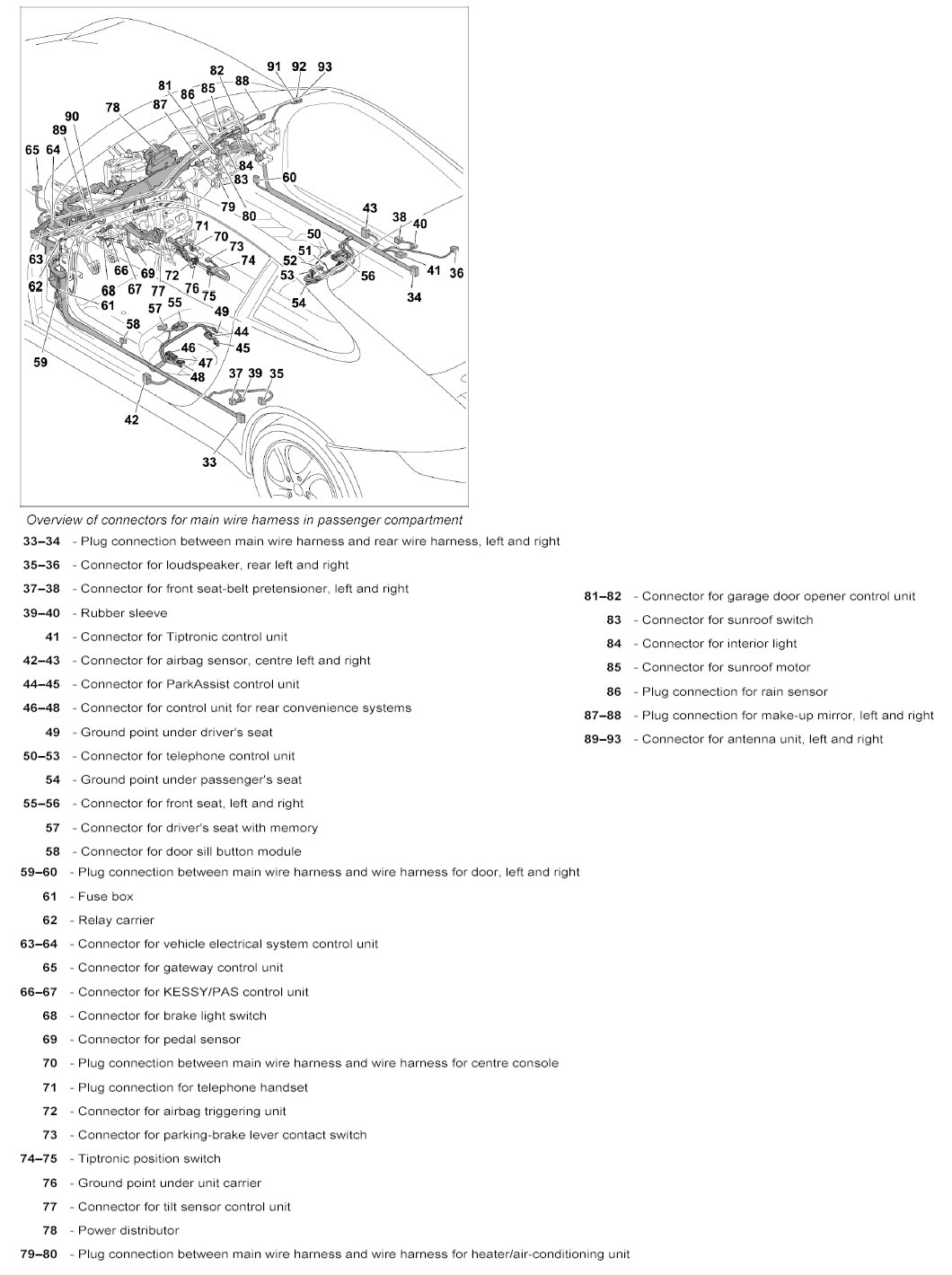 21. Push together plug connection between main wire harness and wire harness for door at the left and right -59 and 60- until they engage securely.