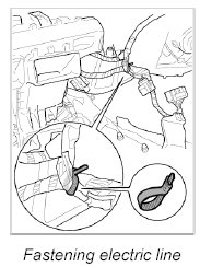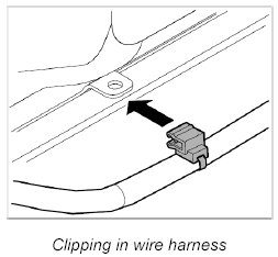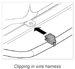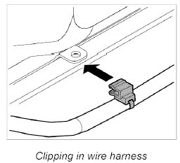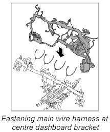 14.1. Lay main wire harness to heater/air-conditioning unit wire harness and fix with a tie-wrap.