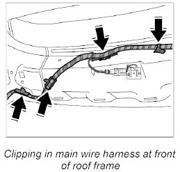 17. Clip in wire harness for end plate under windscreen at the three retaining clips -arrow-.