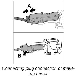 12. Connect plug connection of make-up mirror, left and right -87 and 88-.