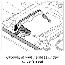 31. Fit rubber sleeves -39 and 40- and push on connector for front seat-belt pretensioners at the left and right -37 and 38-.