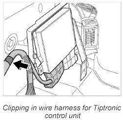 30. Push on connector on Tiptronic control unit -41- until it engages securely and lock it.