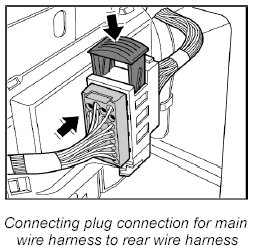 32. Connect plug connection between main wire harness and rear wire harness at the left and right -33 and 34- and lock it.
