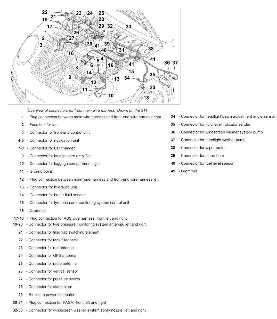 31. Push together plug connection between main wire harness and front-end wire harness, left -12- until it engages securely. Clip in connector socket.