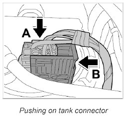 20. Push on connector for filler flap switching element -21- until it is felt to engage.