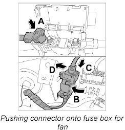 33.1. Push connector onto fuse box for fan -Arrow A-.