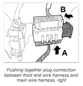 34. Push together plug connection between main wire harness and front end wire harness, right -1-.
