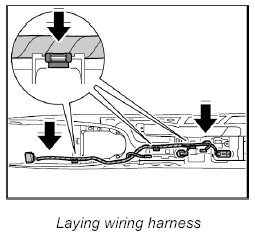 1. Lay wiring harness with retaining clips in centre console and push on retaining clips at the points provided.