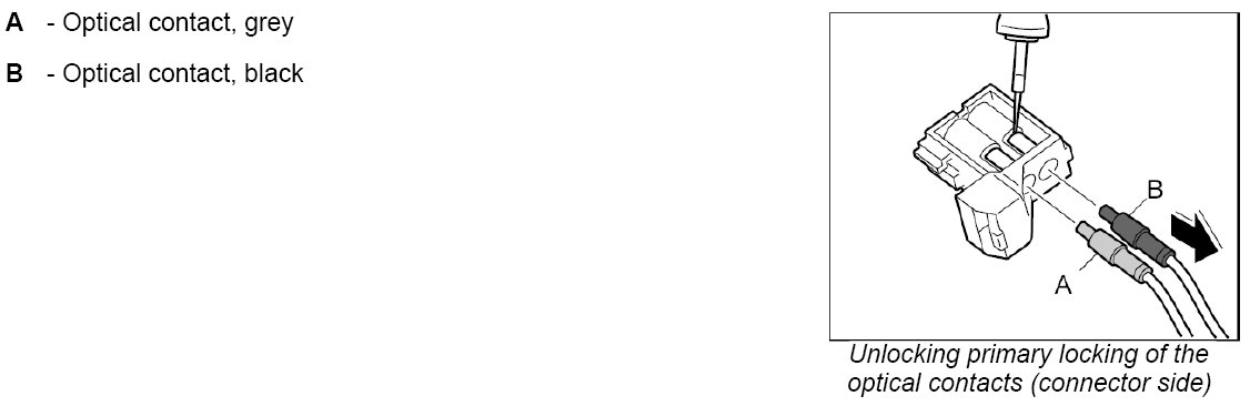 Grey contacts are used in the wiring harness >> control unit junction (optical input).