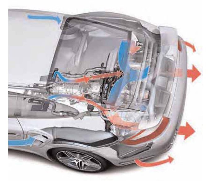 The outlet openings for the outgoing air of the charge air coolers were provided with a new design in the completely newly developed rear apron.