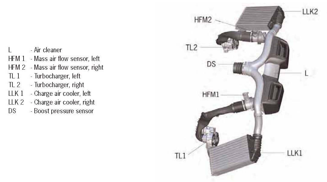 The boost pressure sensor measures the pressure upstream of the throttle adjusting unit (electronic throttle) as well as the air temperature before the air enters the intake system, and supplies this information to the DME control unit. The boost pressure is controlled by way of the position of the vanes in the turbocharger. Throttle adjusting unit (electronic throttle) The throttle adjusting unit (electronic throttle) has a diameter of 74 mm.