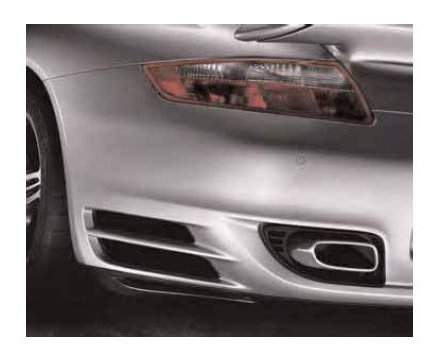 The rear apron of the new 911 Turbo was completed redesigned. In addition to modified side outlet openings for the outgoing air of the charge air coolers, the new 911 Turbo is also equipped with integrated exhaust tailpipes. The tailpipes were relocated to a higher position compared with the 911 Turbo (996), and are integrated in the rear apron of the new 911 Turbo as a distinguishing feature and characteristic design element - analogous to the Carrera GT. In order to protect the rear apron against the high temperatures of the exhaust tailpipes, a shield made of high-temperature-resistant plastic capable of withstanding temperatures up to 536 °F (280 °C) is installed in the area surrounding the tailpipe.