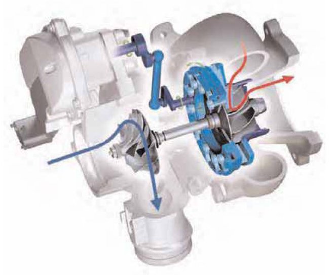 The greatest development potential for exhaust turbochargers is solving the conflict between good response at low engine speeds and high specific performance values at high engine speeds. Variable turbine geometry with variable vane adjustment in front of the turbine wheel has shown itself to be the optimum solution for further improving turbocharger response and thereby the response of the turbocharged engine.