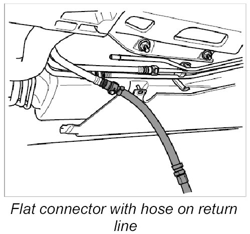 11. Disconnect flat connector with hose and connect the rapid-action coupling to the fuel return line. Make sure the coupling is fitted correctly and securely (it must click into place) by pulling the line apart.