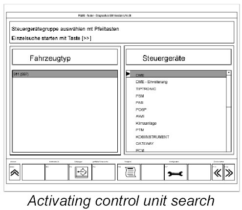 6. Run the individual control unit search for DME. To do this, select DME with the tracer pen and press F12>>.