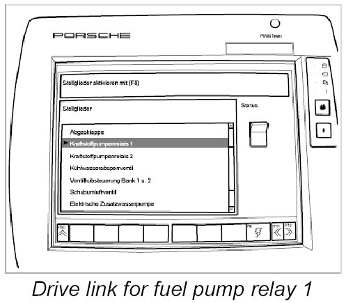 10.1. Proceed as described for fuel pump 1: Activate fuel pump relay 2 using the PIWIS Tester 9718.
