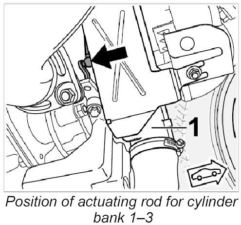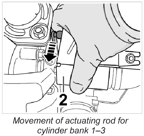 2. Check adjustment mechanism on turbocharger for cylinder bank 1-3 and cylinder bank 4-6.