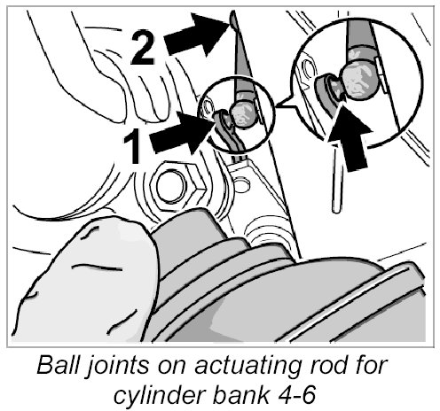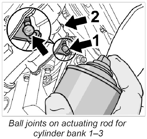 3. Grease ball joints on adjustment mechanism for cylinder bank 1-3 and cylinder bank 4-6.