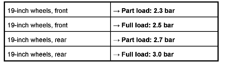 Tire pressure of cold tires (approx. 20°C)