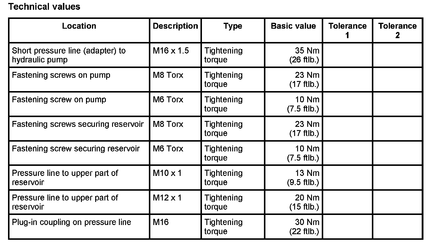 ^ Short pressure line (adapter) on hydraulic pump. -> Tightening torque: 35 Nm (26 ftlb.)