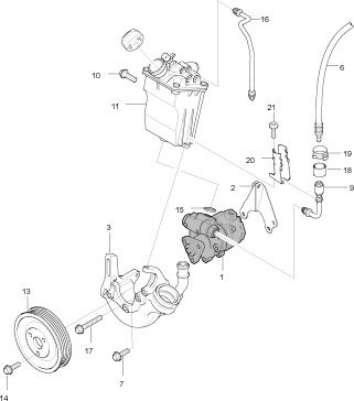 ^ Pressure line between the reservoir and hydraulic pump on 911 Turbo vehicles with manual transmission.