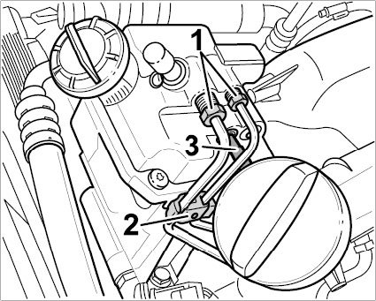 3.3. Loosen return line -3- on the upper part of the reservoir.