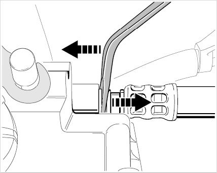 5. Clip in the return line/hose at the holder for the reservoir (back of the reservoir).