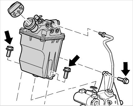 If you are replacing the reservoir, remove the cap, puncture the strainer and drain Pentosin through the filler opening.