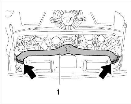 Open engine compartment lid. Install protective supports.