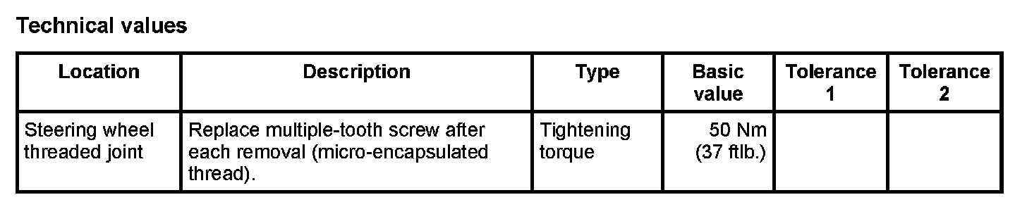 ^ The steering wheel is made of magnesium alloy. The tightening torques must be strictly observed.