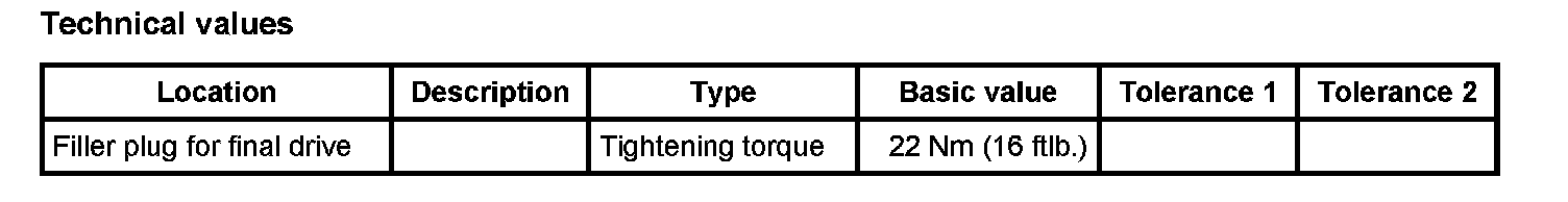 3. Replace sealing ring for filler plug, clean filler plug, and tighten. -> Tightening torque: 22 Nm (16 ftlb.)
