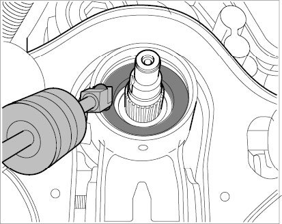2. Drive sealing ring into the transmission using pressure piece P 9668.