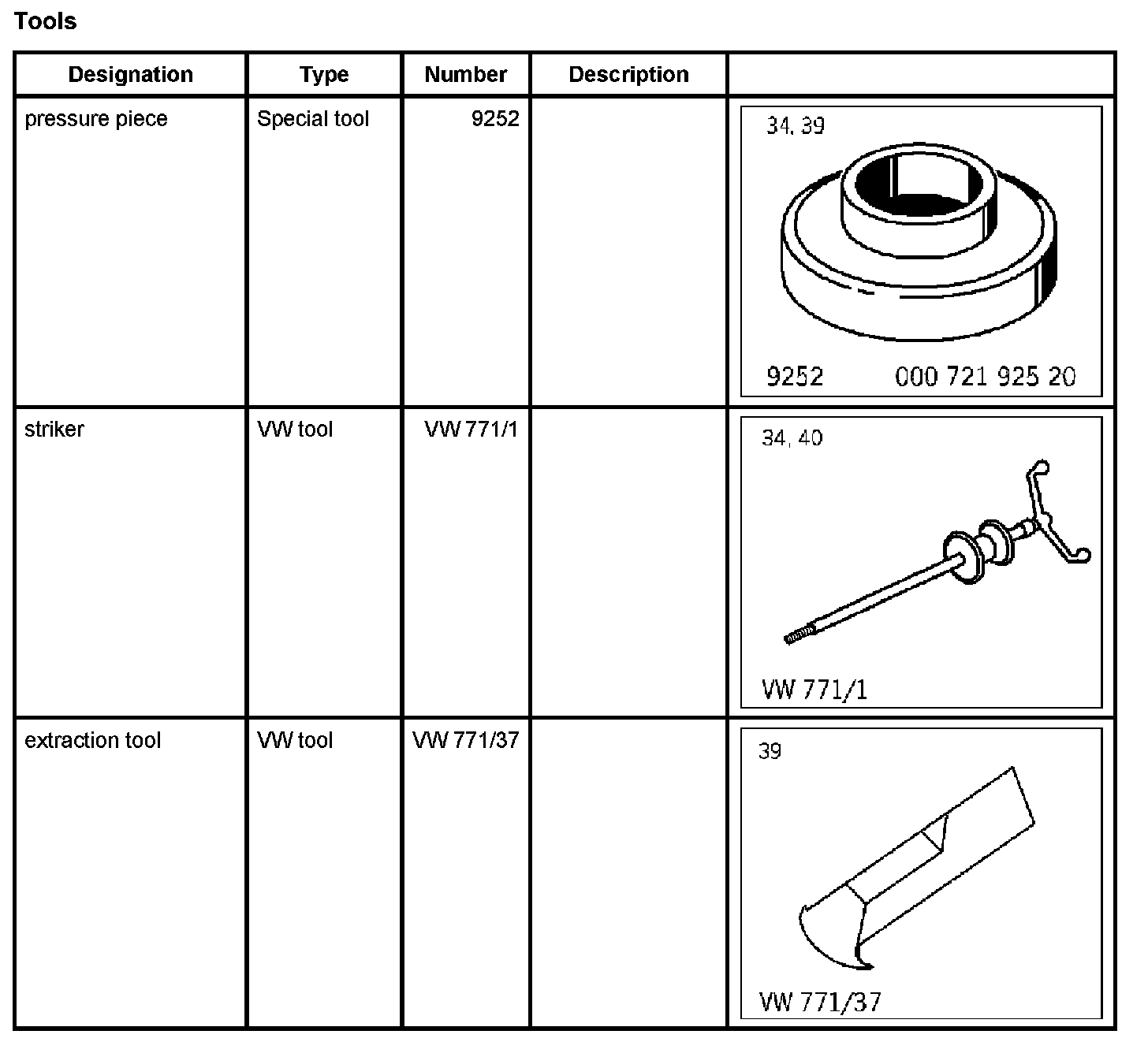1. Remove sealing ring from transmission using striker VW 771/1 and extraction tool VW 771/37.