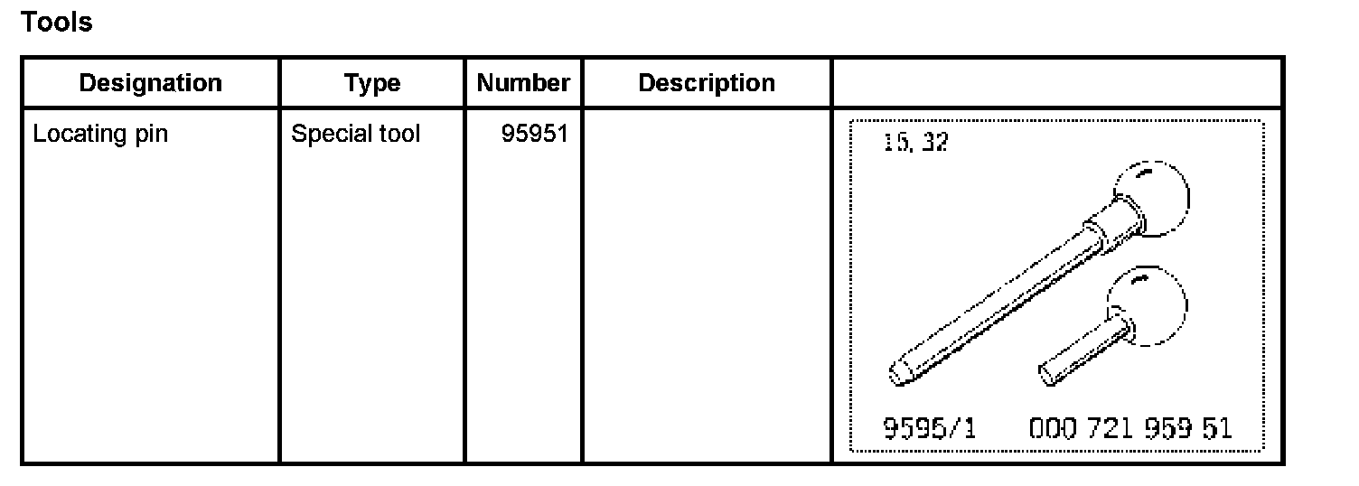 1. Locating pin 95951 (long) must be removed from the transmission housing.