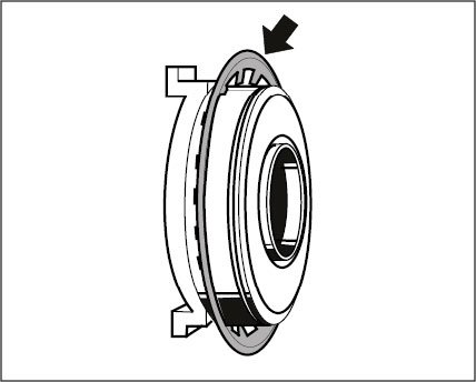 2. Engage release bearing with lugs (twist lock) in the cut-out between the tongues of the diaphragm spring.