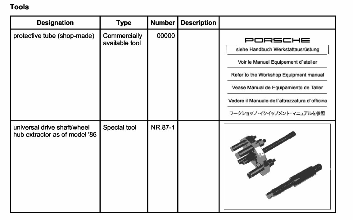 ^ To prevent damage to the drive shaft, wheel bearing housing or transmission flange, slide a protective tube (shop-made) 00000 over the drive shaft.