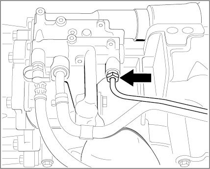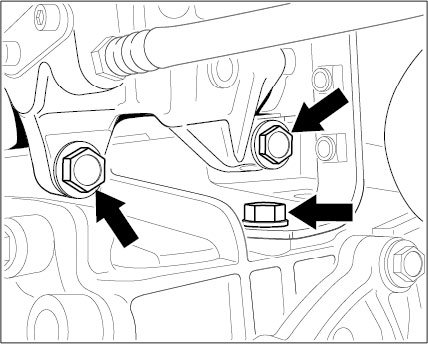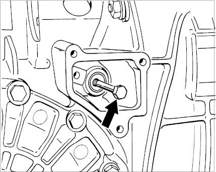 9. Unscrew connecting bolts between the engine and transmission and pull out the transmission to the rear.