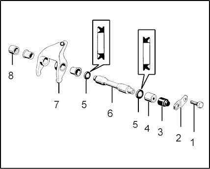 7. Screw a screw (M6) into the clutch control shaft and pull out the shaft at the screw.