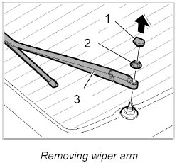 3. Press wiper arm -3- down at joint and pull down from the wiper motor drive.