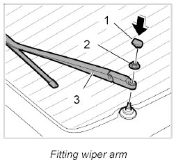 1. Position wiper arm -3- on the wiper motor drive and do up the fastening nut -2- by hand.