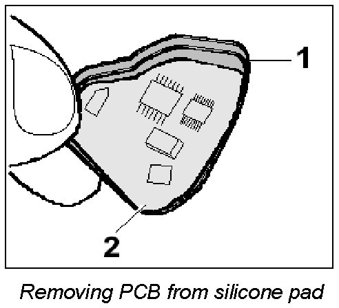 2. Insert PCB -2- into the new silicone pad -1-.