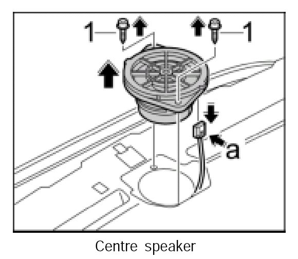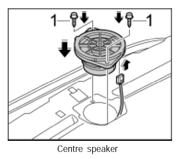 2. Unscrew both fastening screws -1- for the centre speaker.