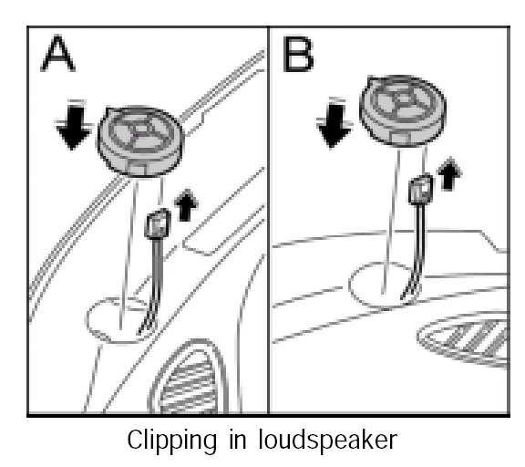 2. -B- Clip the speaker into the dashboard and check that it is firmly in place.