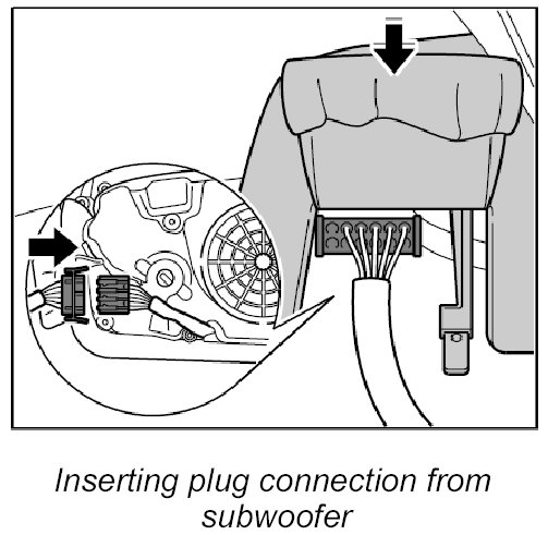 2. Insert the plug connection from the subwoofer until the connector audibly engages.