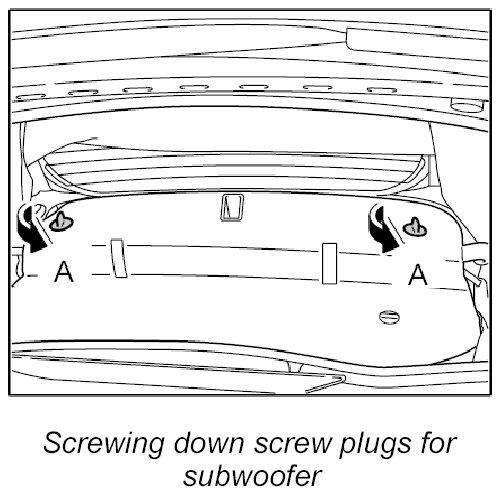 4. Screw down the subwoofer screw plugs on the left and right -A-.