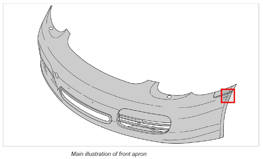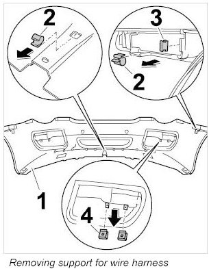 1. Insert a screw driver between front apron -1- and support -2, 3- and carefully take off. Check support -2, 3-, replace if necessary.